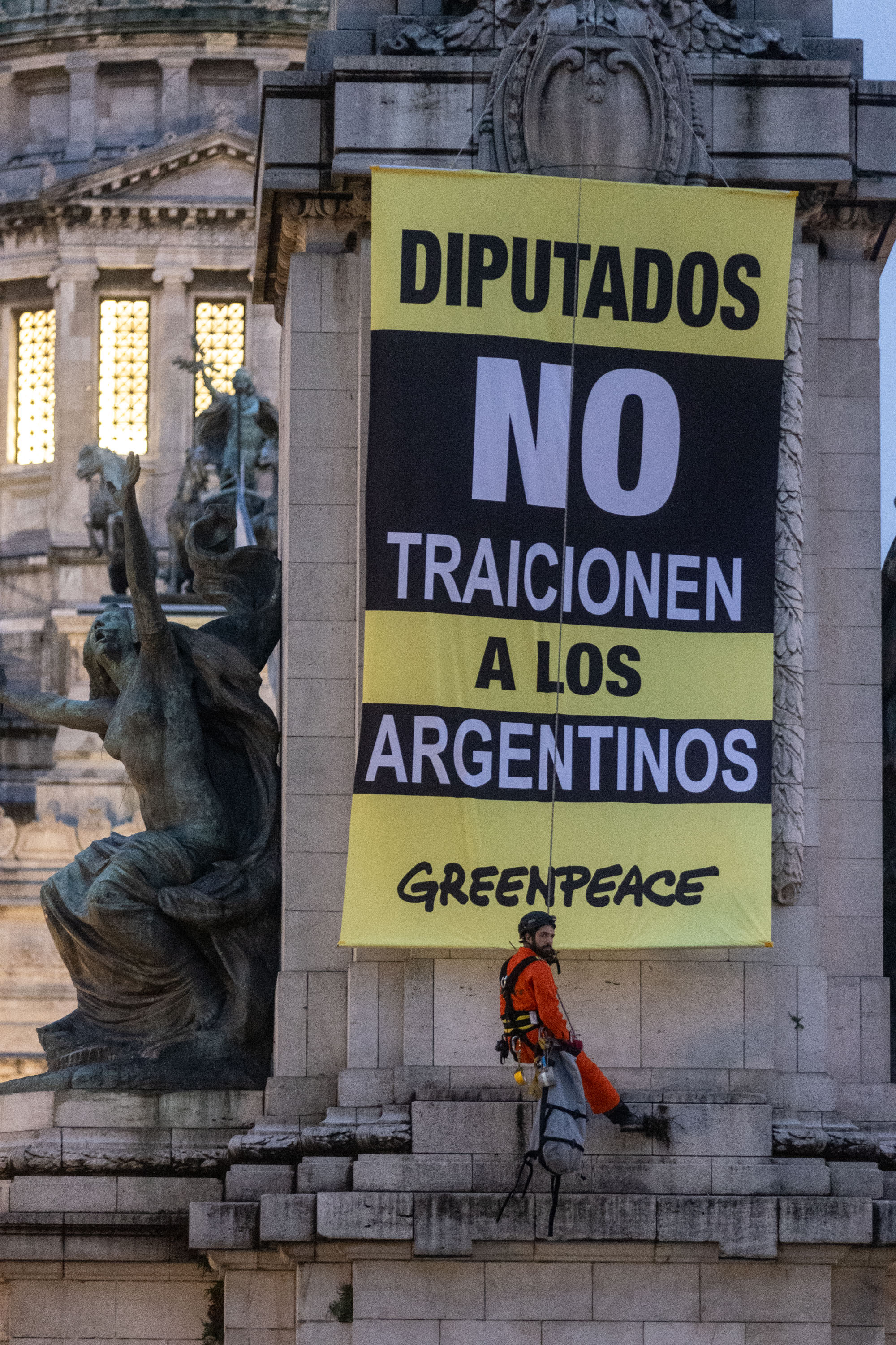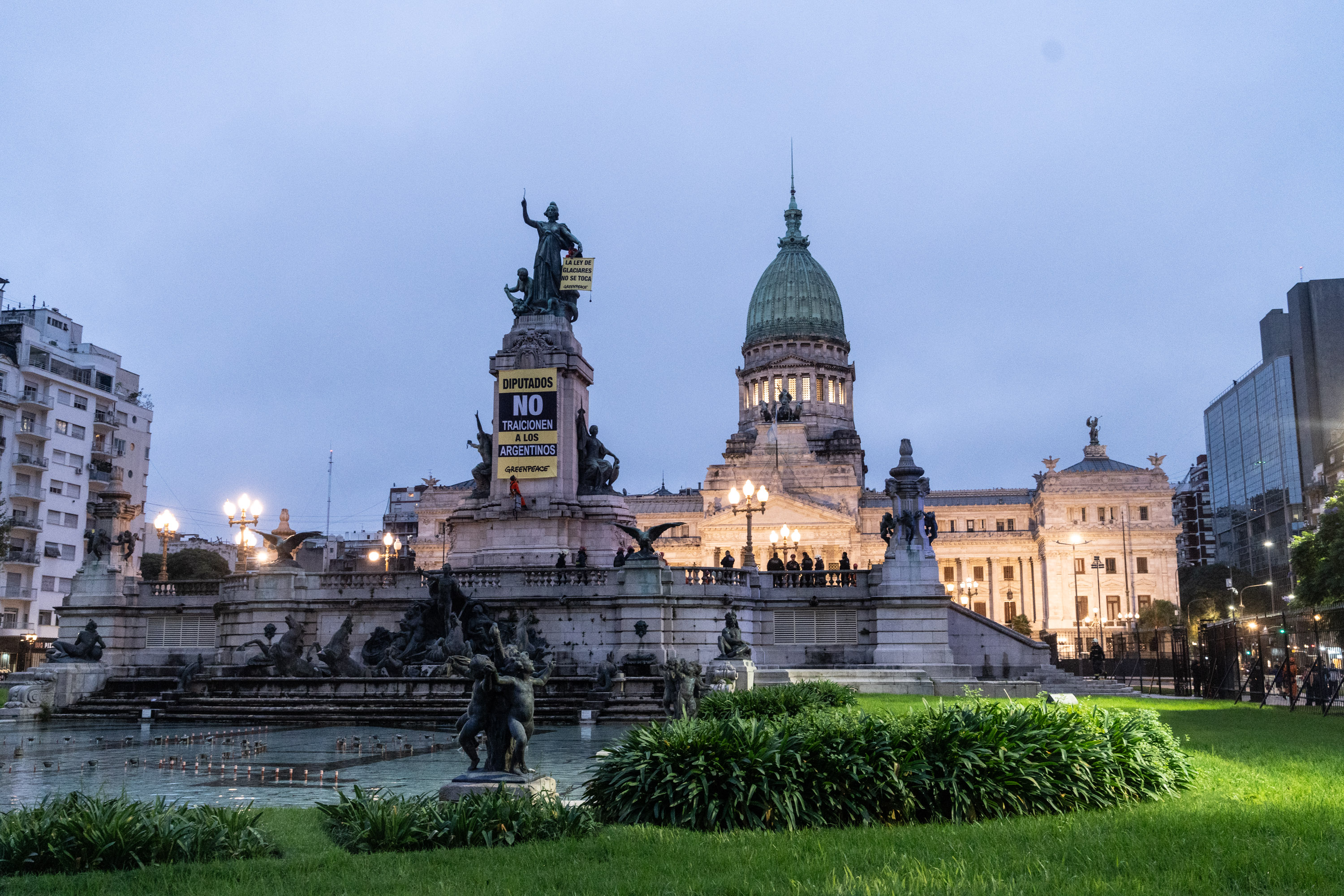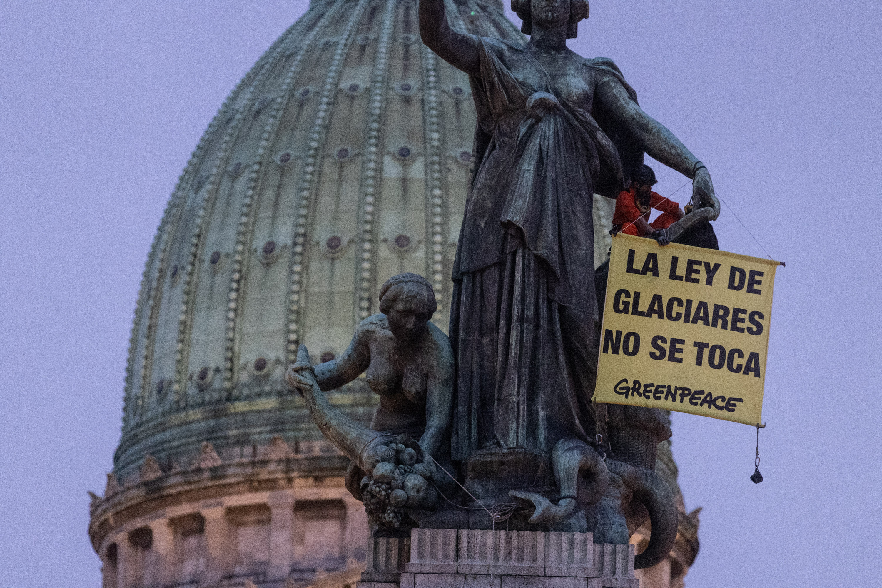En la antesala del debate en la Cámara de Diputados sobre la modificación de la Ley de Glaciares, activistas de Greenpeace fueron detenidos hoy tras realizar una acción pacífica a metros del Congreso de la Nación para exigir a los legisladores que no avancen con el proyecto de reforma de la Ley que pone en riesgo las principales reservas de agua dulce del país@pepemateos